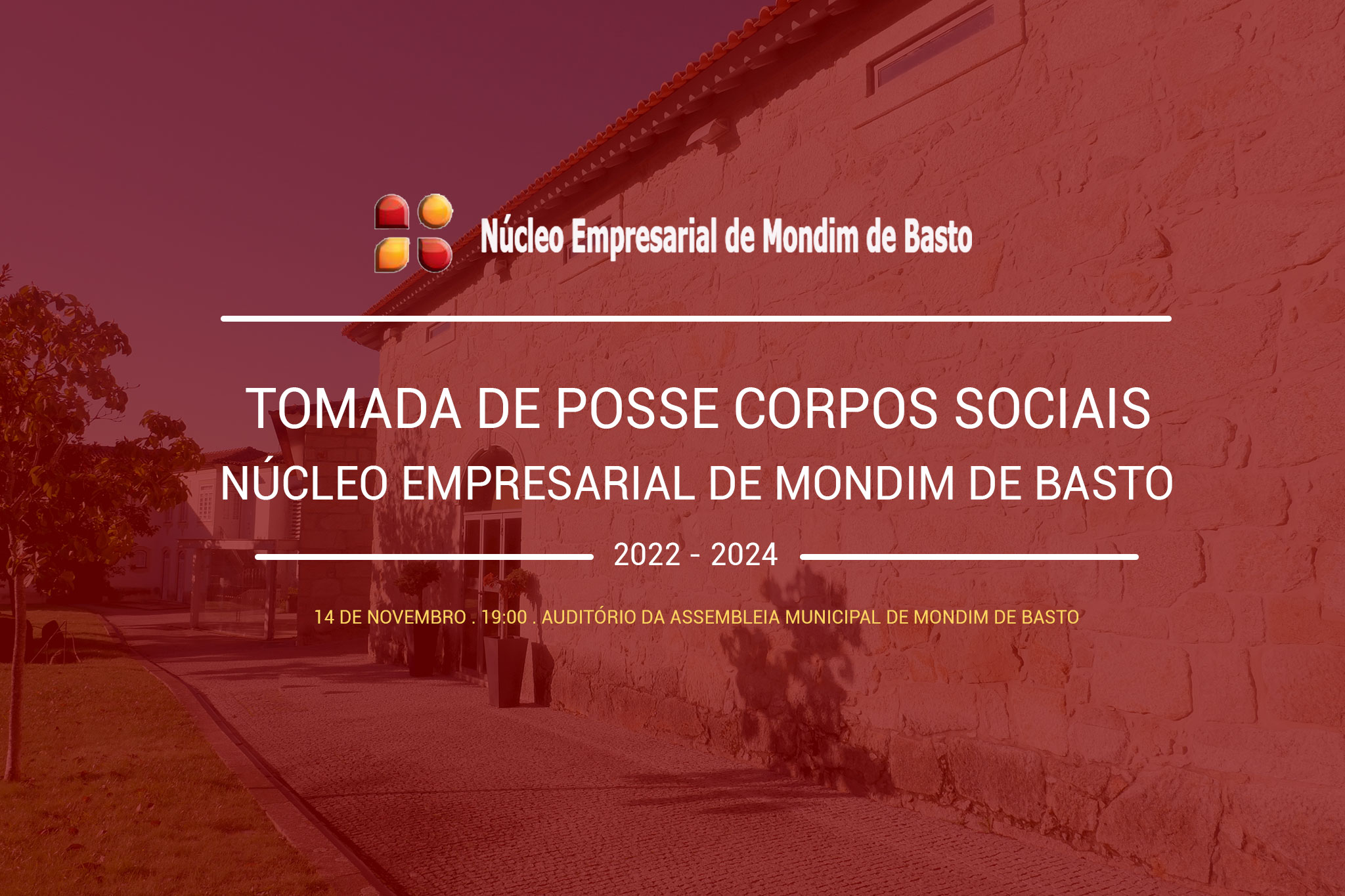 Desta forma, o Presidente da Assembleia Geral do Núcleo Empresarial de Mondim de Basto tem a honra de convidar Vª Exa a assistir à tomada de posse dos Corpos Socias da Instituição, eleitos em 28 de Outubro/22 para o triénio 2022-20224, que se realiza no próximo dia 14 do corrente mês de Março, pelas 19:00h, no Auditório da Assembleia Municipal de Mondim de Basto, sito na Praça do Município nº 1, Mondim de Basto.