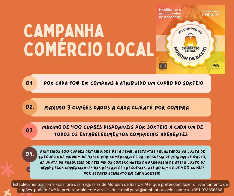 Serão entregues inicialmente lotes de 100 cupões pela AEMB aos Comerciantes sendo os restantes levantados pelo Comerciante caso deseje até ao limite de 400 por Comerciante e por sorteio. Esperamos que os consumidores realizem bons negócios e os comerciantes excelente vendas.
